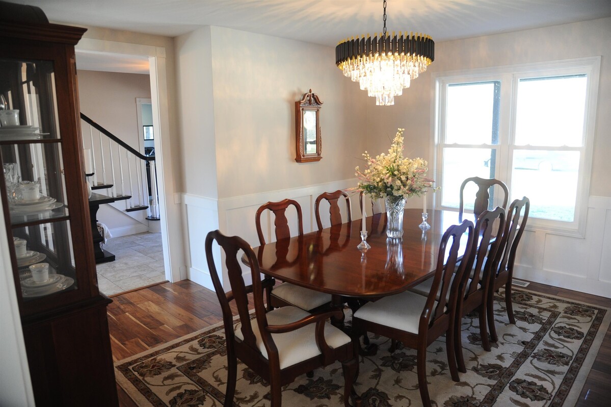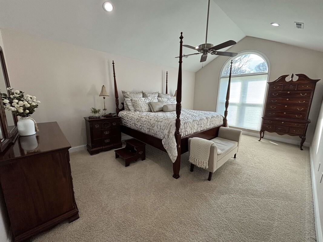 Inside, the home boasts a large, recently updated kitchen with an island and raised bar top, perfect for sipping morning coffee while watching the sunrise over the water. The adjoining gathering room features a new gas log fireplace, while the formal dining room and flex room (ideal as an office, formal living room, or fifth bedroom) provide versatile spaces for your lifestyle. The large laundry room adds everyday convenience.