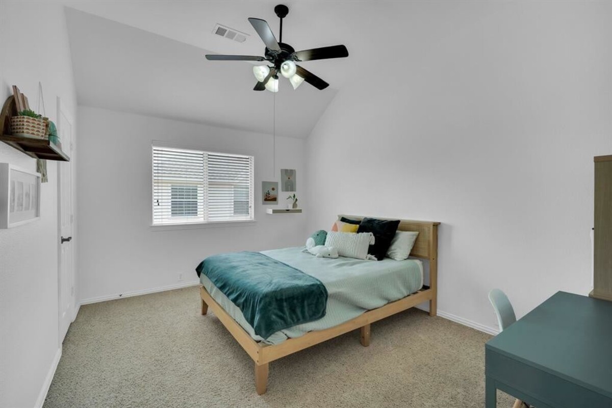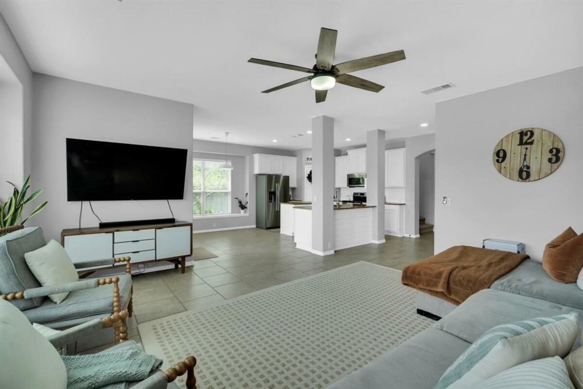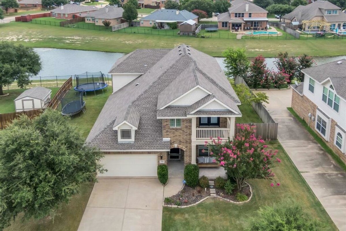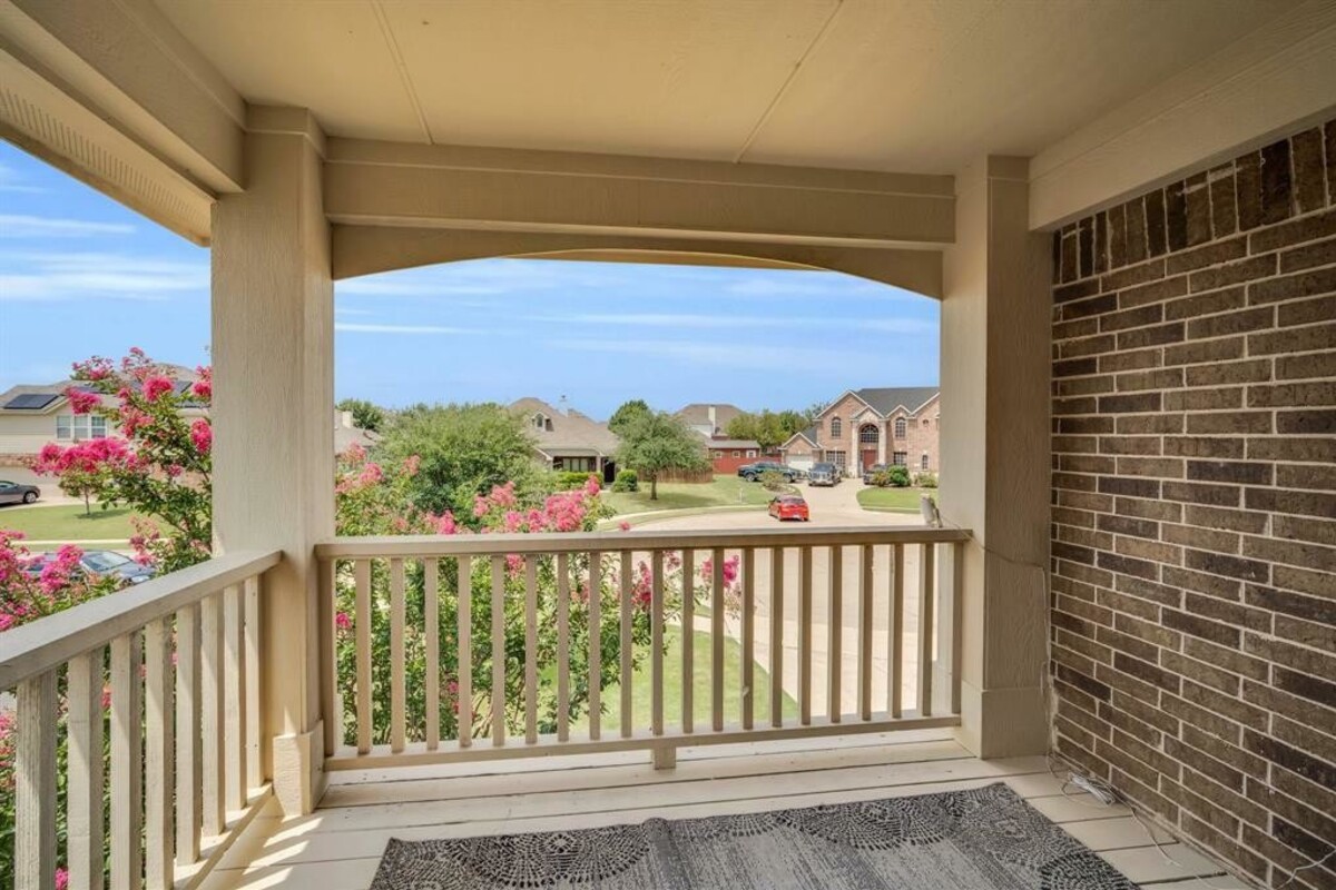 Enjoy eating fresh peaches from your peach tree while listening to the soothing sound of the bubbling fountain in the pond! The front porch swing is another place to rewind or you might even enjoy a gentle evening breeze on the upstairs balcony. This peaceful, pristine home offers the comfort of natural light throughout and plenty of space for everyone. This home includes a second living area upstairs, a media room, 4 spacious bedrooms and 2 and a half baths. There is also a formal dining room that could be used as an office. Well thoughtout extras include: 12' insulation in the attic; Shelves and a built in nook located upstairs in the second living area (which makes for a great school room); french doors in the upstairs living area; new shiplap backsplash and freshly painted cabinets in the kitchen, and new fixtures in primary bathroom. Community ammenities include: pool, playground, and fishing pond. This home is conveniently located within walking distance of Mt. Peak elementary.