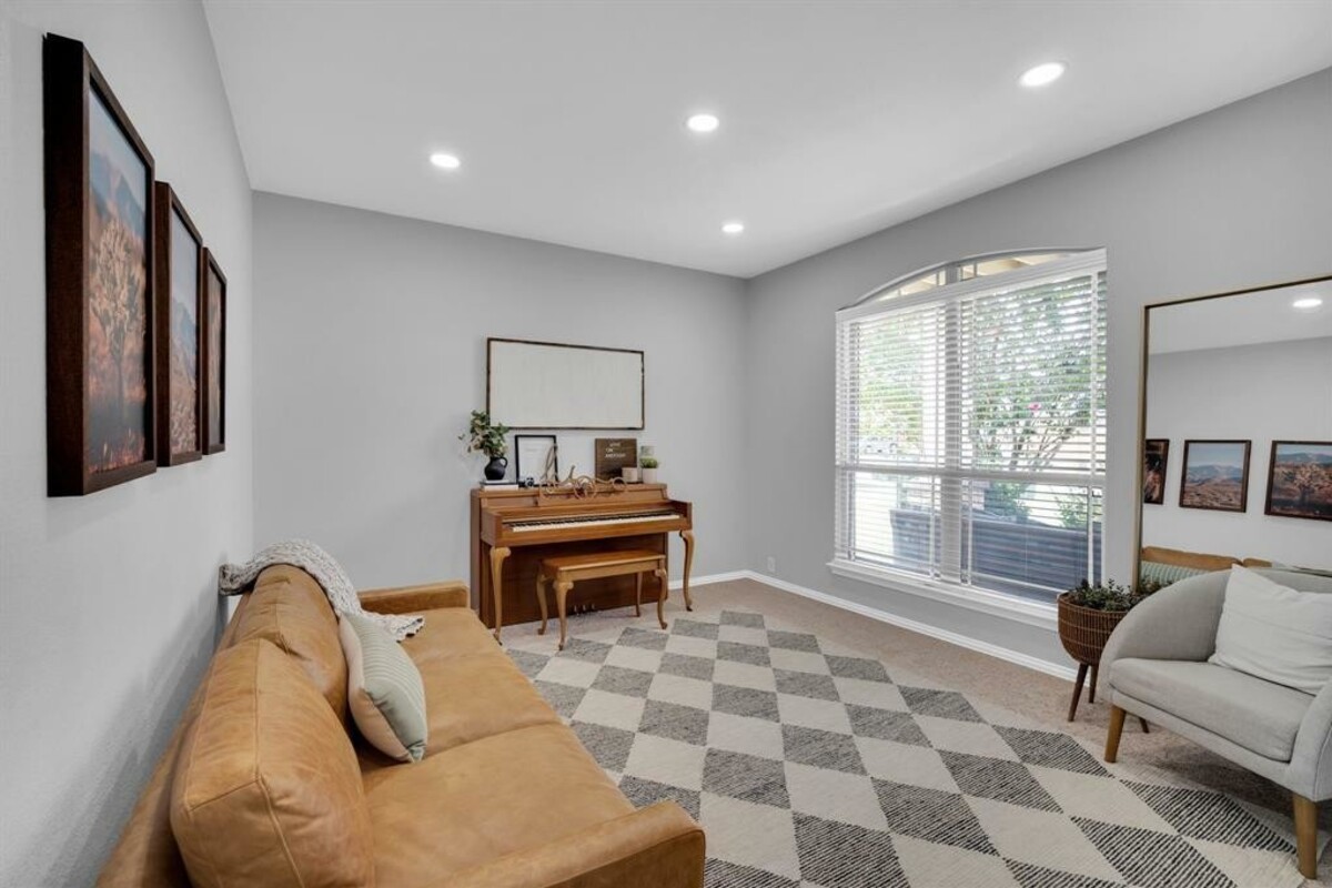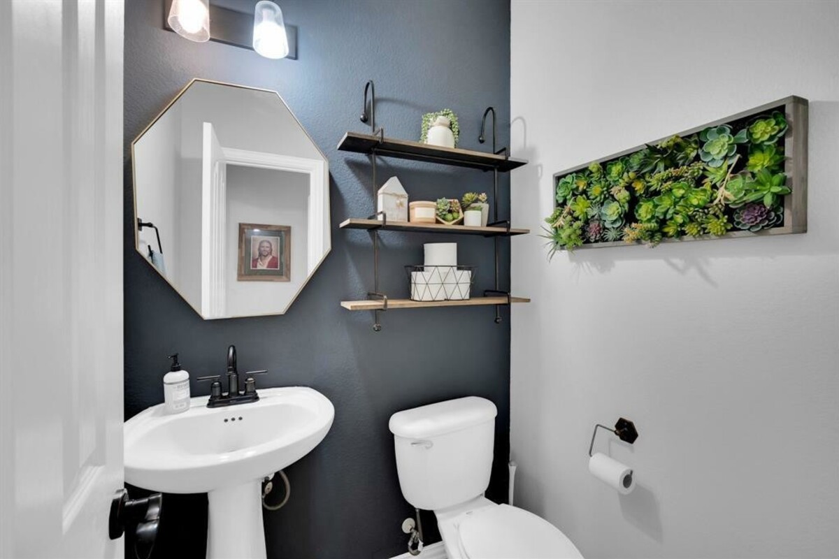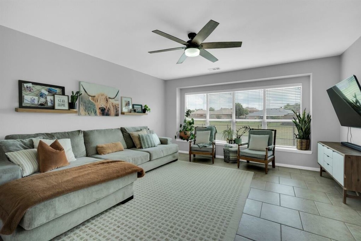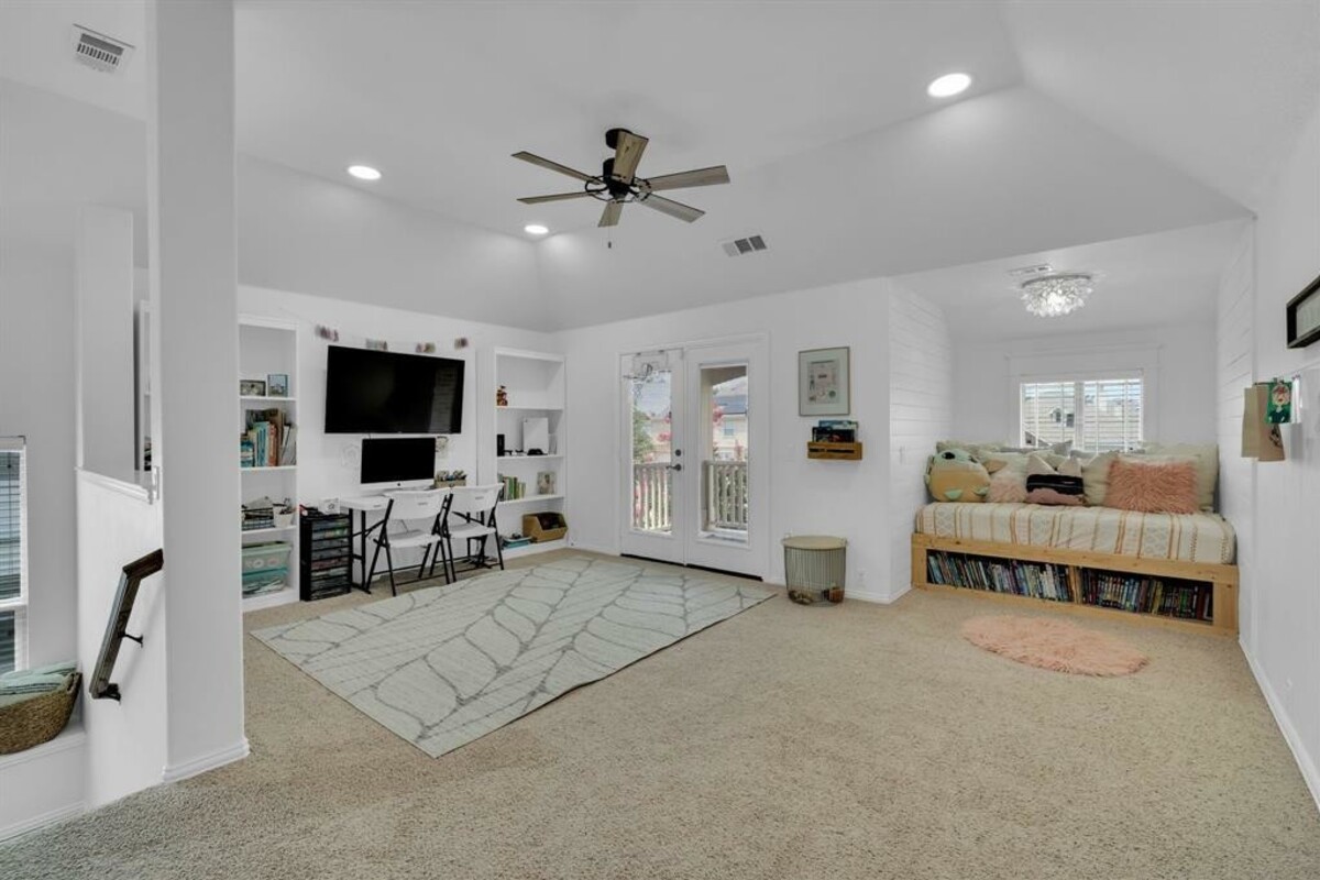 Enjoy eating fresh peaches from your peach tree while listening to the soothing sound of the bubbling fountain in the pond! The front porch swing is another place to rewind or you might even enjoy a gentle evening breeze on the upstairs balcony. This peaceful, pristine home offers the comfort of natural light throughout and plenty of space for everyone. This home includes a second living area upstairs, a media room, 4 spacious bedrooms and 2 and a half baths. There is also a formal dining room that could be used as an office. Well thoughtout extras include: 12' insulation in the attic; Shelves and a built in nook located upstairs in the second living area (which makes for a great school room); french doors in the upstairs living area; new shiplap backsplash and freshly painted cabinets in the kitchen, and new fixtures in primary bathroom. Community ammenities include: pool, playground, and fishing pond. This home is conveniently located within walking distance of Mt. Peak elementary.