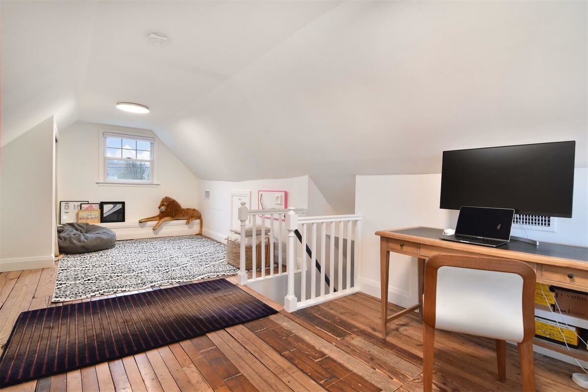 WALK-UP ATTIC: ● Additional 266 sq ft of functional space (plus abundant storage areas) with finished walls, three windows, insulation, heat & A/C