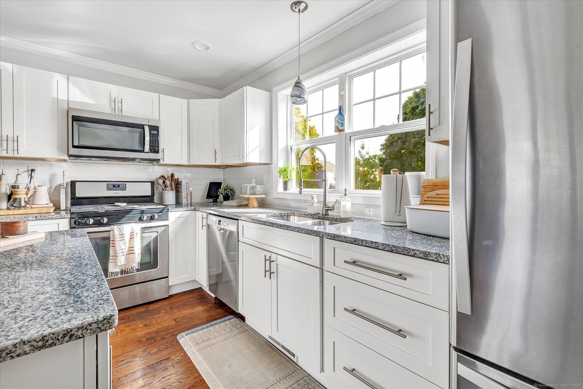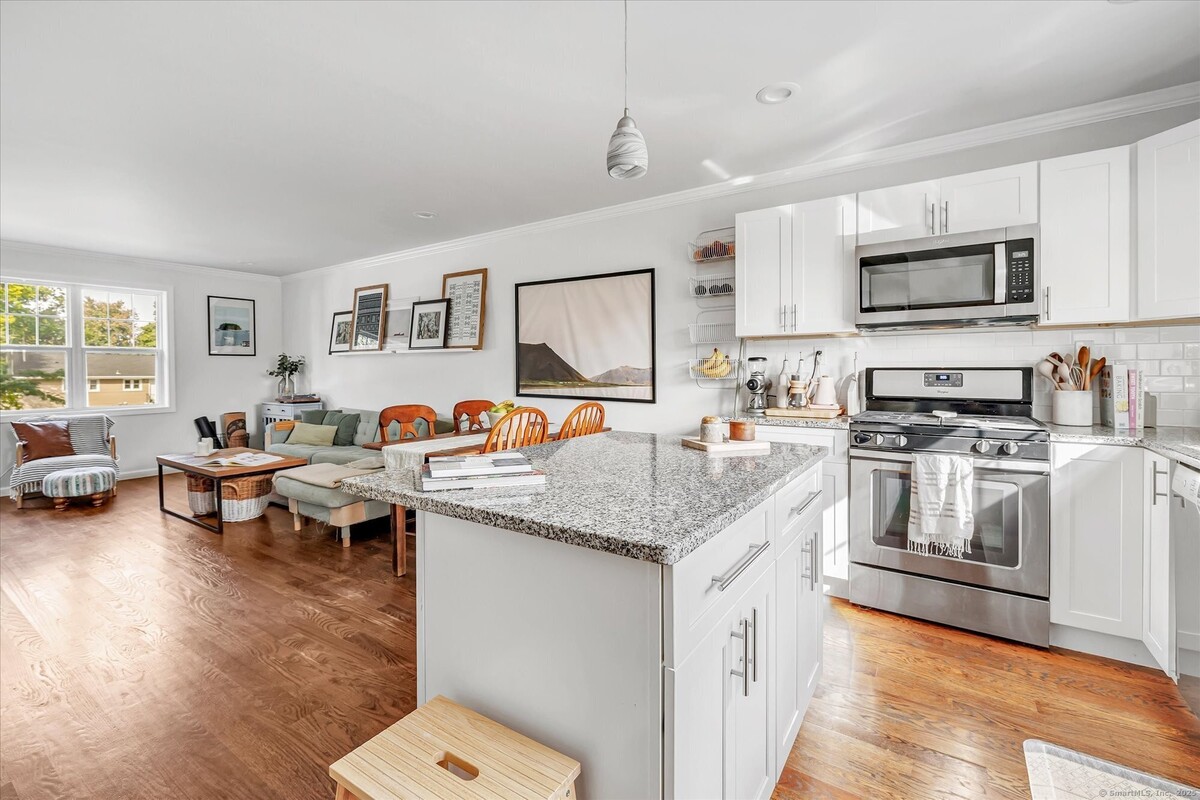 Just listed! This beautiful freestanding condominium offers the perfect blend of privacy, modern comfort, and low-maintenance living-all in a prime location. Set within a quiet, well-maintained 8-unit complex, this move-in ready home is just eight years young and full of thoughtful details. Inside, you'll find a spacious and stylish layout featuring two generously sized bedrooms, each with its own en-suite bath, plus an additional half bath for guests. Gleaming hardwood floors run throughout the entire home, adding warmth and elegance to every room. The modern kitchen is outfitted with sleek finishes and stainless-steel appliances, and it flows effortlessly into a lovely dining area that's ideal for both everyday meals and entertaining. Additional features include a full garage with ample storage space and a dedicated laundry area, offering convenience and functionality. Step outside to the paver patio-perfect for relaxing, grilling, or sipping your morning coffee. This small complex offers a quiet escape tucked away yet located just minutes from major highways, shopping, the railroad station, and some of the area's best beaches, and just a short walk to Two Roads Brewery!!! This property offers a rare opportunity to enjoy easy living without sacrificing space or style. With 4 visitor spots- there is space for guests & the garage boasts an EV charger. Don't miss the chance to make this exceptional home yours!