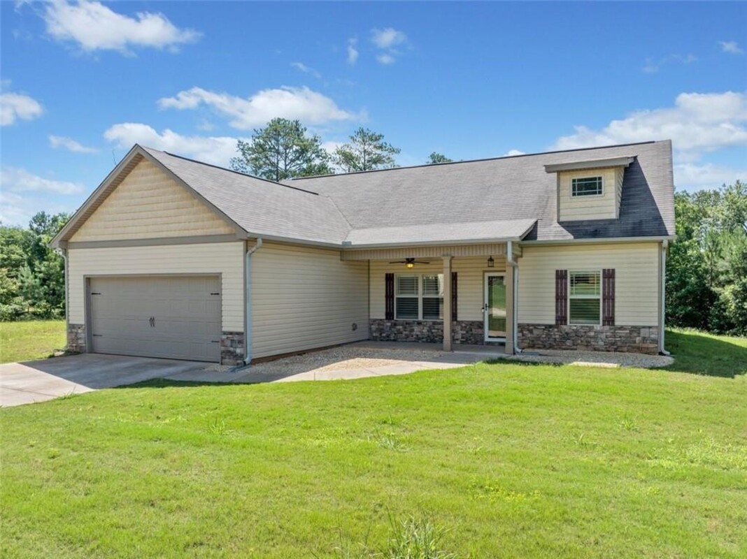 Your DREAM home awaits! Move right into this beautifully maintained 5-year-old STEPLESS ranch home. Roof, HVAC & appliances are just a few years old—NO HOA! Located on over half acre, flat lot, this stunning property is in a quiet neighborhood of more expensive homes, yet 5 minutes to I-75, Tanger Outlet Mall, Shopping and Dining. Step inside to the oversized GREAT Room with a fireplace, Formal Dining Area with coffered ceilings and upgraded trim. The gourmet kitchen features stainless appliances, granite counters, pantry, and breakfast area. All main living areas are open to create a great flow for entertaining. The large, primary Suite includes a trey ceiling, lots of light and private primary bath comes with two sinks, separate soaking tub, separate shower and walk in closet. Additional highlights of this home include two car garage, amazing, upgraded lighting and finish work, covered front and back porches—a layout designed for everyday living and entertaining. Home is eligible for USDA financing. Come see it today!