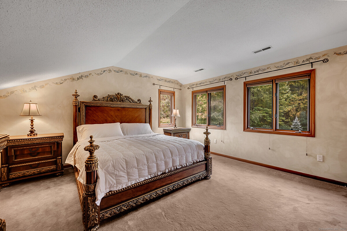 RARELY available is this 5 bed, 4 full/2 half bath contemporary style home tucked away on PICTURESQUE High Ridge Hollow in HIGHLY SOUGHT AFTER West Avon. Convenient, bright, and inviting floor plan features over 5000 SQFT showcasing large rooms, high ceilings and plenty of natural light shining throughout. Chef's kitchen boasts marble countertops, Sub Zero refrigerator, Miele appliances including double ovens, built-in coffee, Viking gas cook-top, double dishwashers, plenty of cabinetry, pantry, two large islands, and beautiful skylights! Main level features impressive formal dining room w/ wood-burning fireplace and a cozy living room w/ gas fireplace along with a guest bedroom suite and 2 additional bedrooms. Upstairs you will find the primary bedroom suite featuring impressive walk-in closet and full bath w/ double vanity, walk-in shower and skylights. Outback, enjoy the serene, tranquil PRIVATE setting, along with a new deck, saltwater pool, and hot tub. Lower level features 2 finished rooms along w/a half bath and adds 975 SQFT of comfortable living space. Additional features include 3 car attached garage, main level laundry, generator hook-up, central air, and irrigation system. Located in a quiet, peaceful and PRIVATE neighborhood setting while providing easy access to all of what the Farmington River Valley has to offer including top-rated schools, shops, parks, award winning restaurants, major highways, and downtown Hartford, this special home can be yours now.