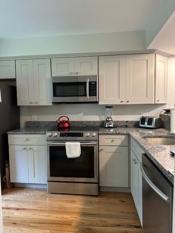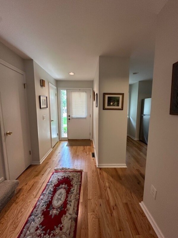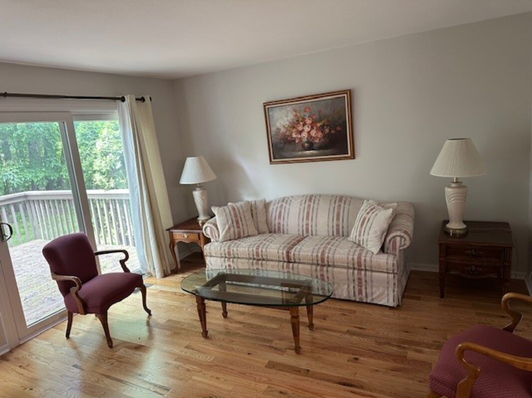 Move right in! You will not want to miss out on this opportunity to own this great home located in a small complex with newer kitchen cabinets and granite counters, gleaming hardwood floors on main level.Enjoy all your meals either at the breakfast bar or dining area. When you are ready to unwind ,relax on the back deck overlooking a peaceful private wooded area, or unwind watching the glow of the lit fireplace.