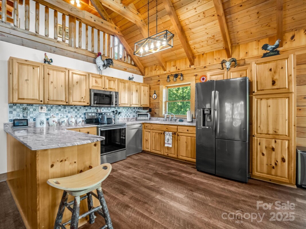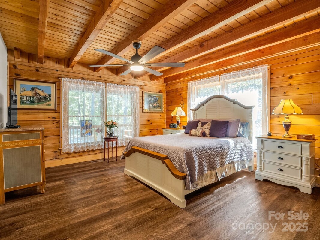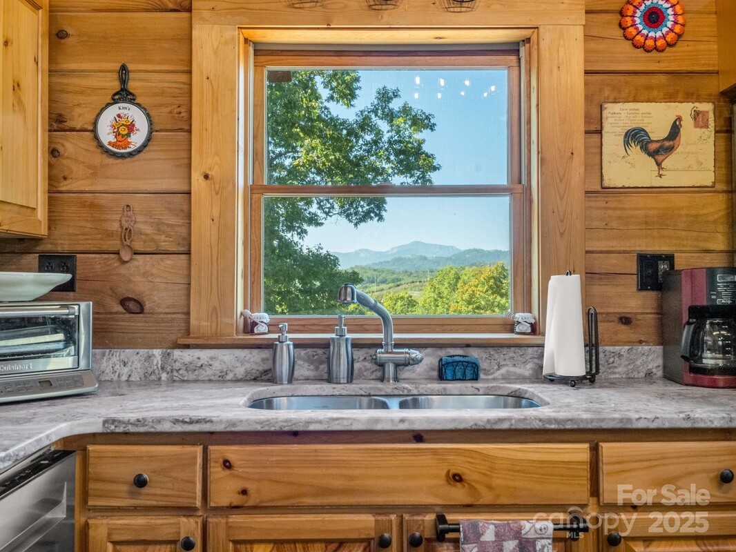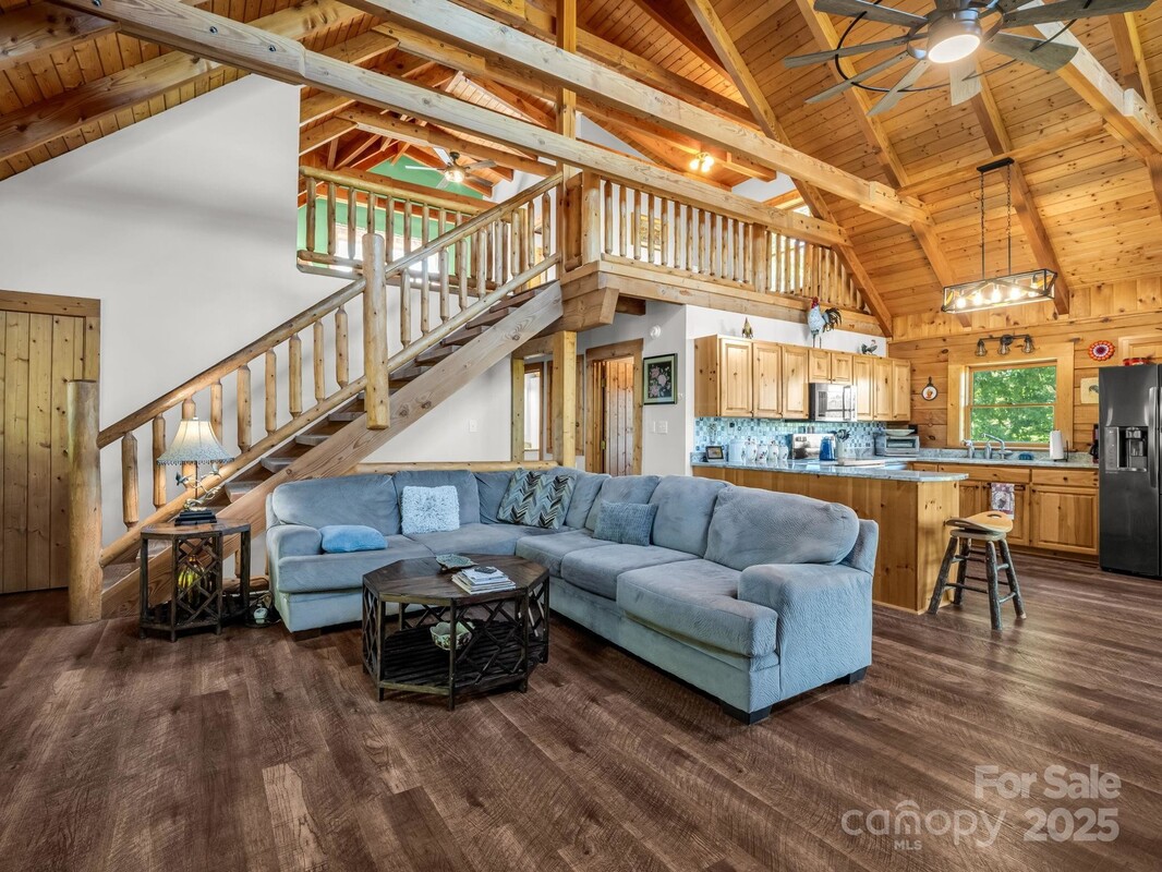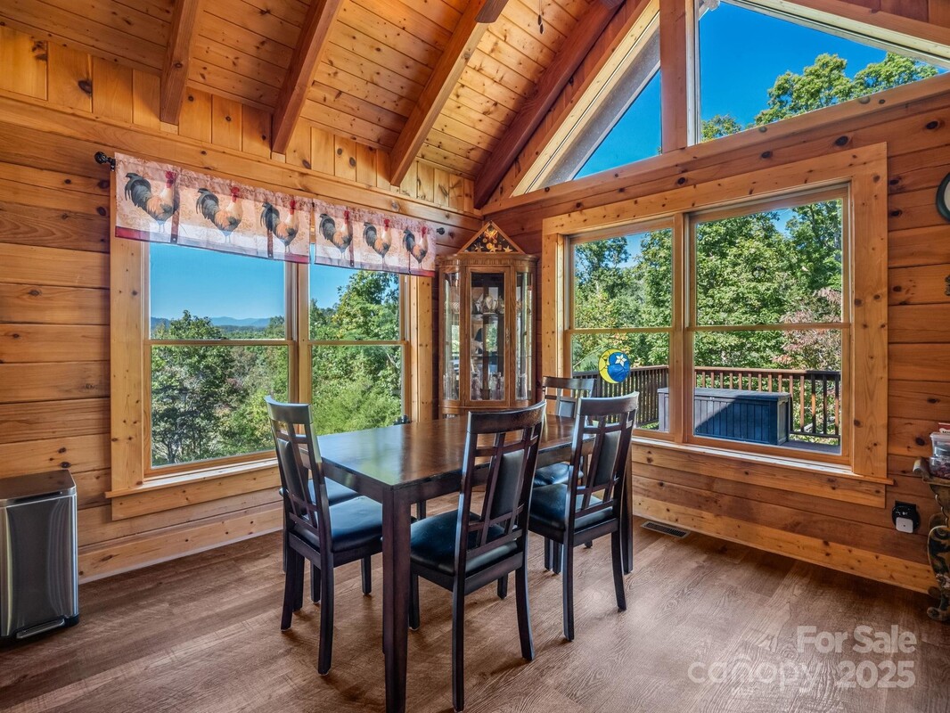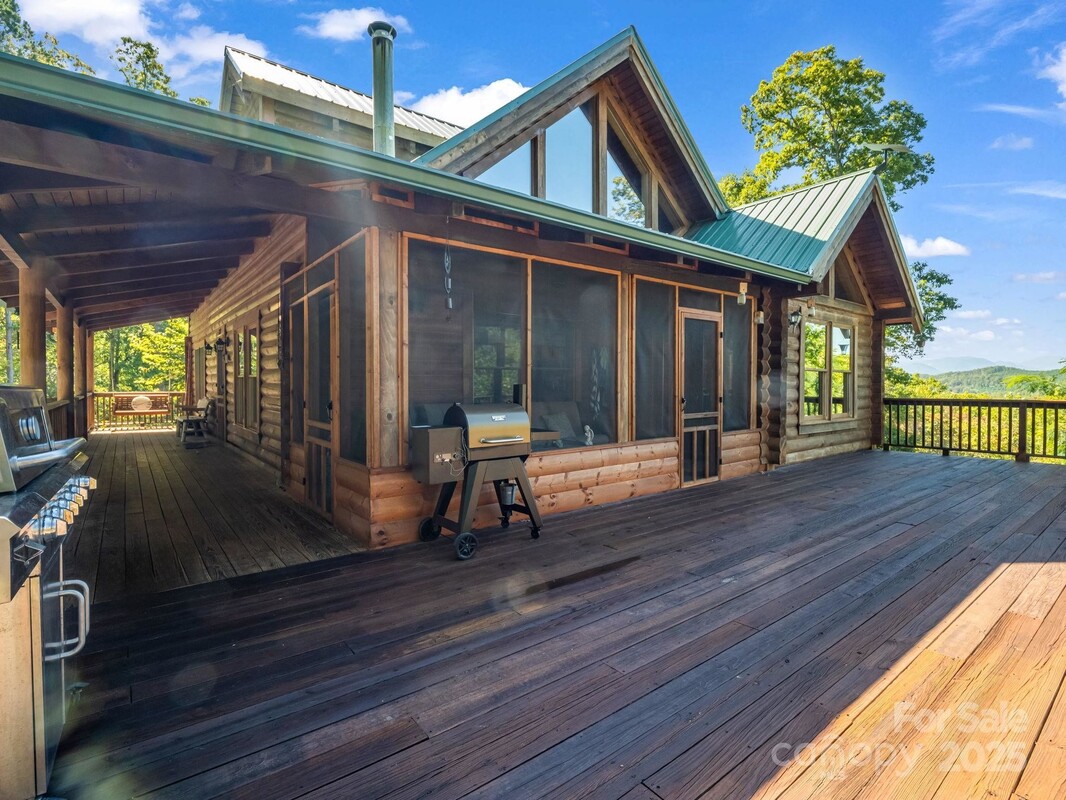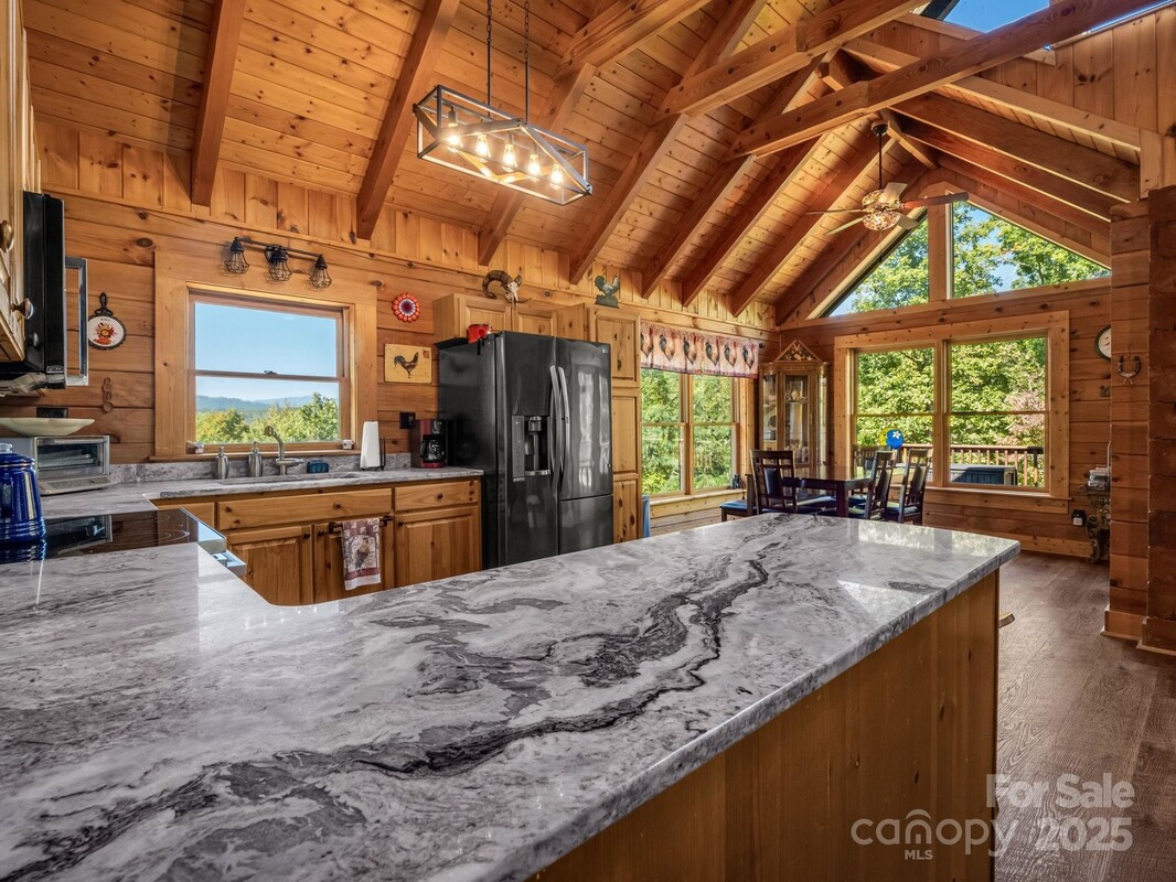 Tucked away on over 16 acres, this charming log home offers the perfect blend of rustic elegance and modern comfort. With year-round mountain views, a serene spring-fed pond, and peaceful walking trails leading to a creek and waterfall, this property is truly a nature lover’s paradise. The inviting front porch, spacious deck and screened-in porch are all designed for seamless indoor-outdoor living. Inside, the home features an open floor plan with soaring cathedral ceilings and a cozy great room anchored by a wood pellet stove. The beautifully updated kitchen shines with granite countertops, a new backsplash, and all-new appliances. A large main-level