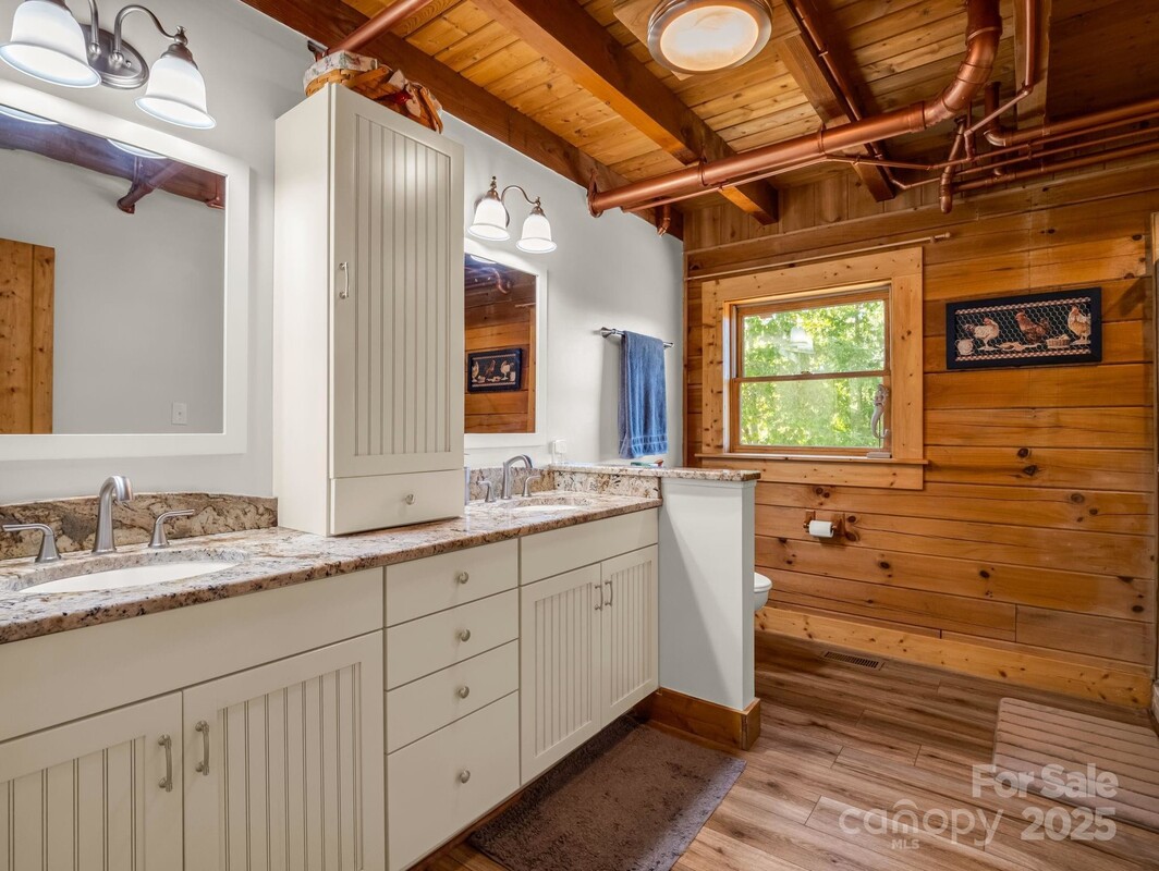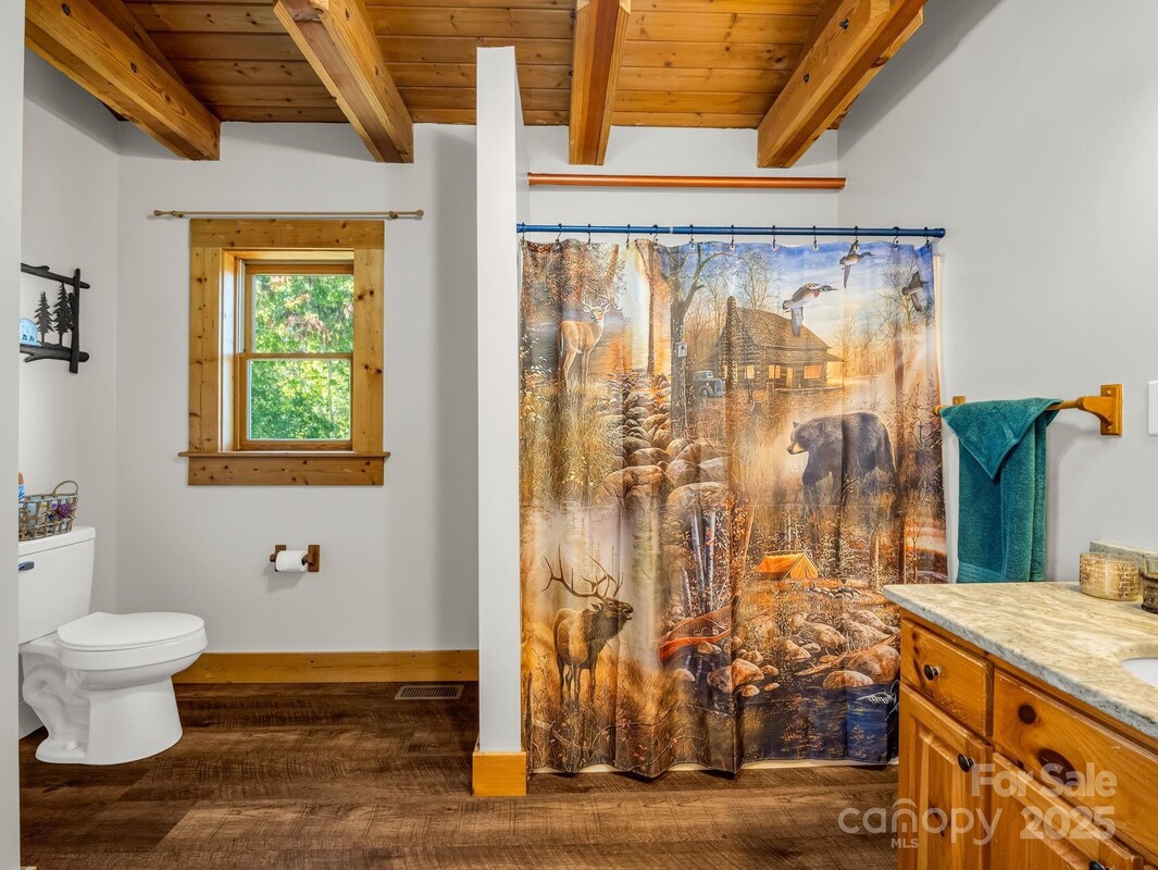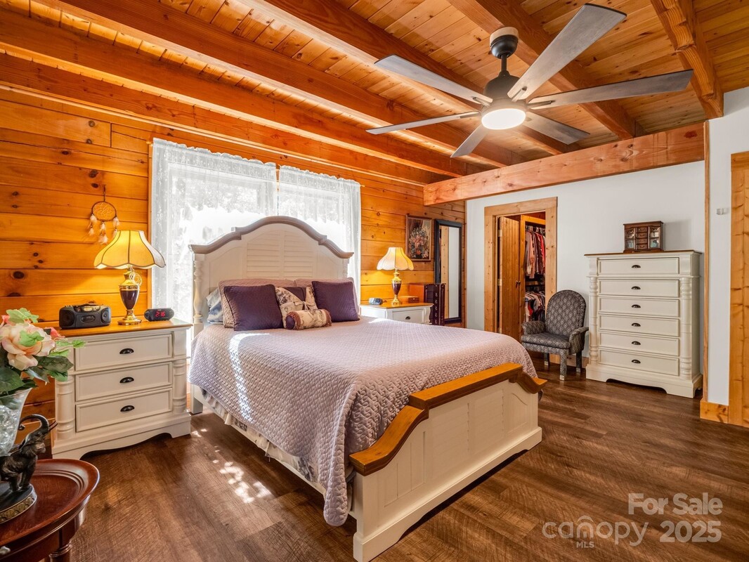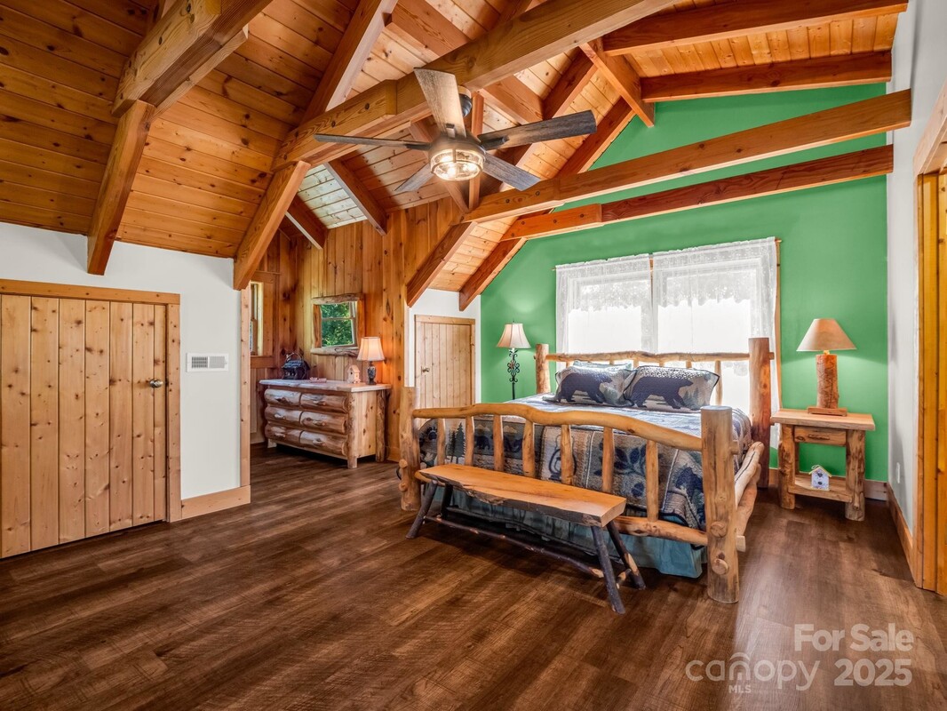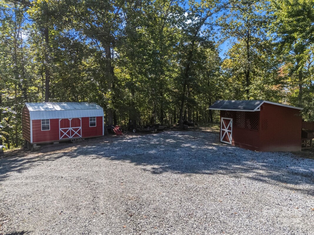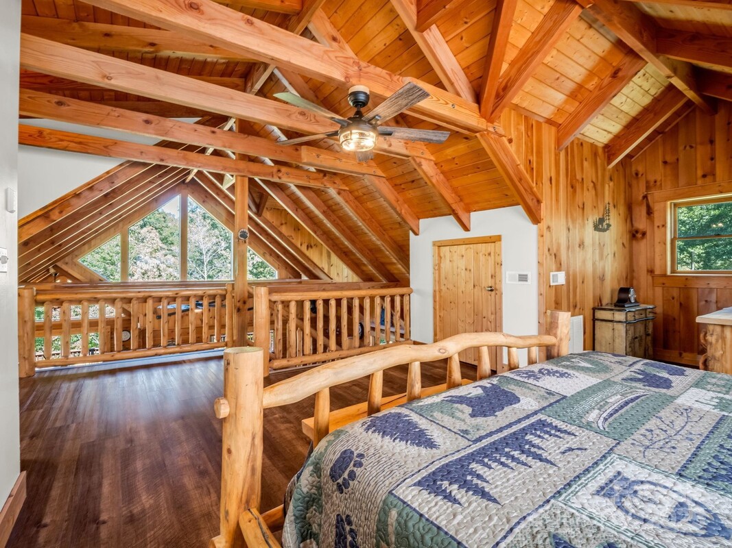 bedroom includes a walk-in closet with custom wood shelving, while the upgraded bath offers a walk-in shower and quality finishes. You will also appreciate the functional laundry/pantry room with built-in wood shelving, cabinetry and new washer & dryer. Upstairs, a private loft-style bedroom features its own en-suite bath and a cozy sitting area, ideal for guests or a quiet retreat. The full basement includes a spacious Game Room/Bedroom and an unfinished utility area—perfect for a workshop, hobby space, or additional storage. The possibilities on this property are endless. With no animal restrictions, you can create your own hobby farm. Raised garden beds are already in place for your seasonal plantings, and the property includes a metal storage building and storage shed with a chicken coop. Recent updates include: New flooring throughout, Updated lighting and ceiling fans and Metal roof professionally refitted. This one-of-a-kind mountain retreat offers the peace of country living with all the amenities you need—don’t miss your chance to call it home.