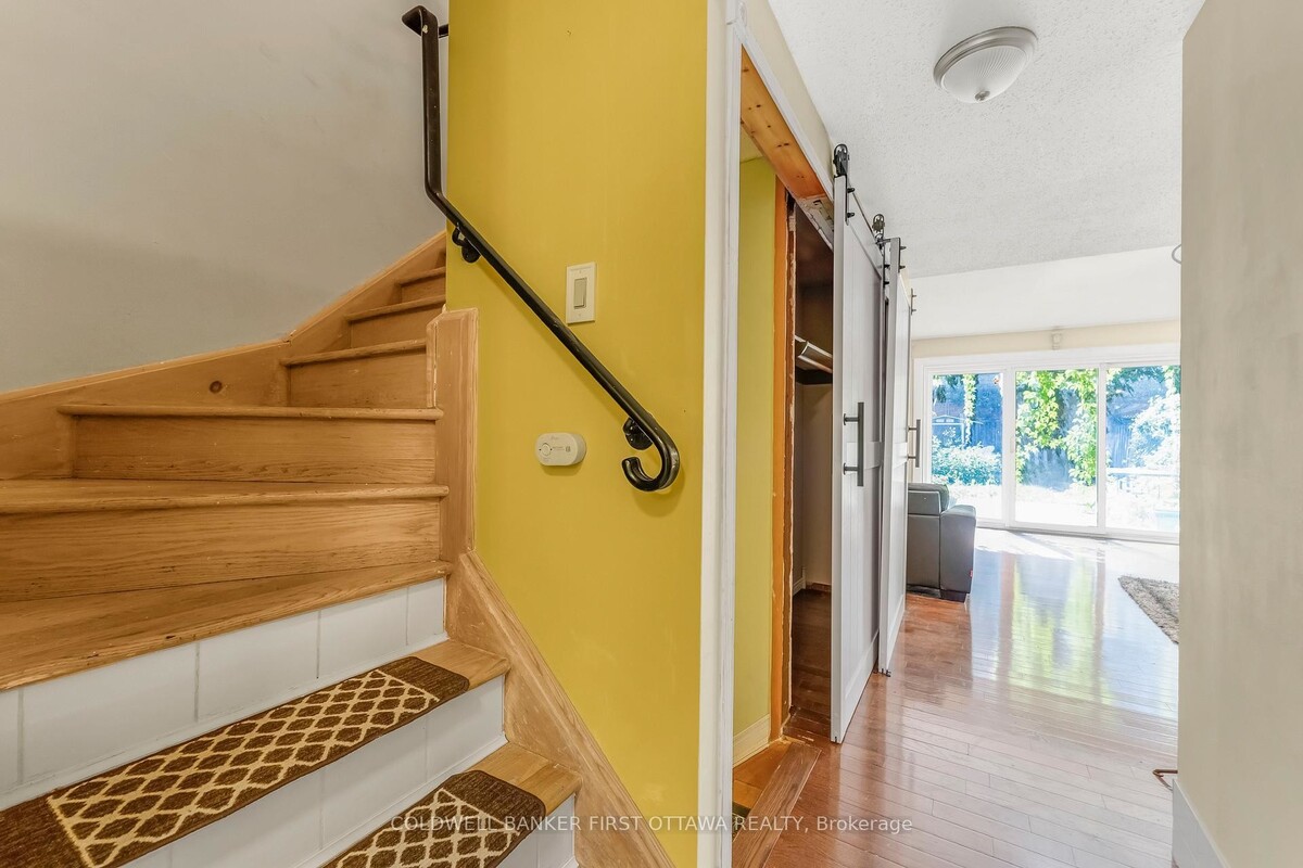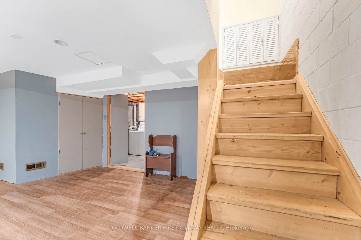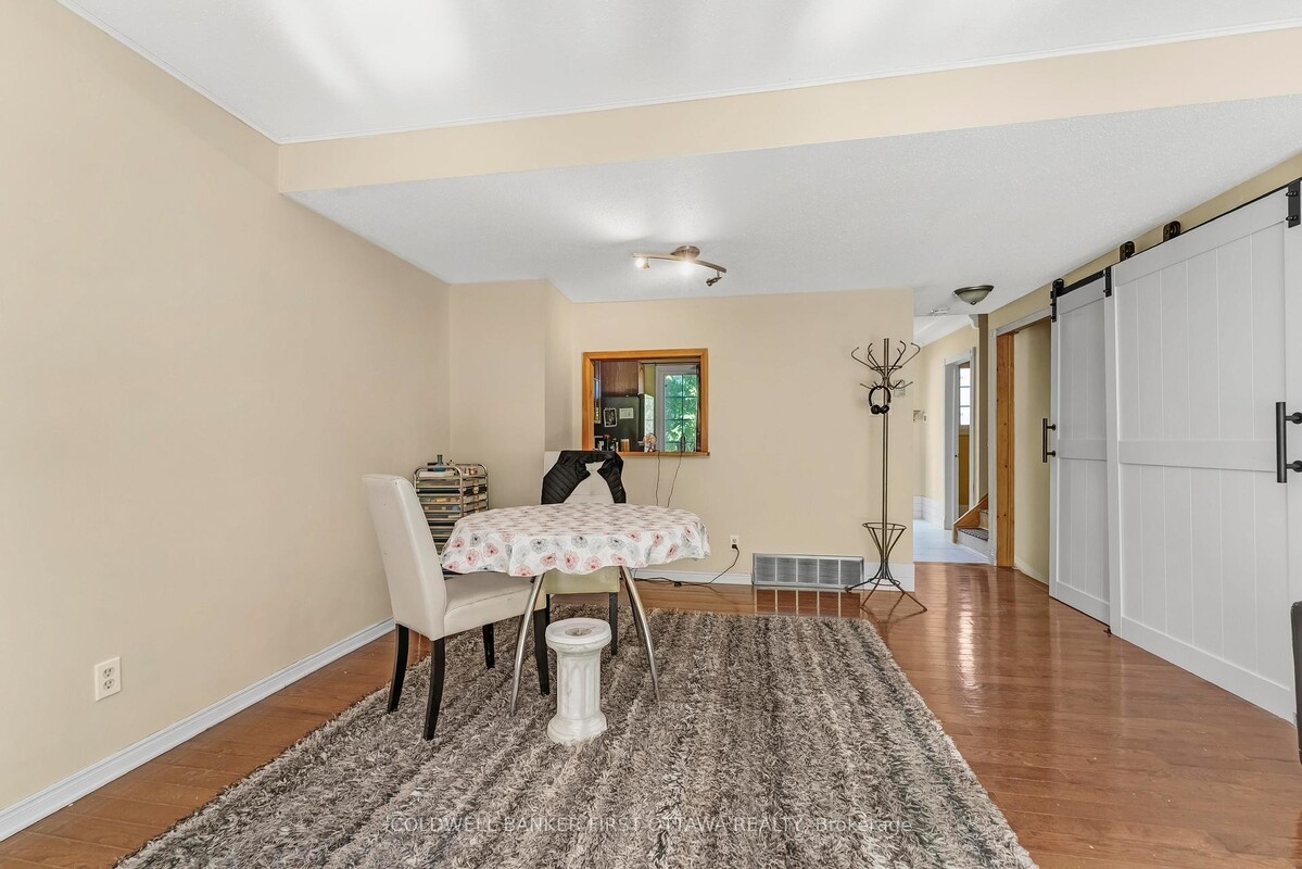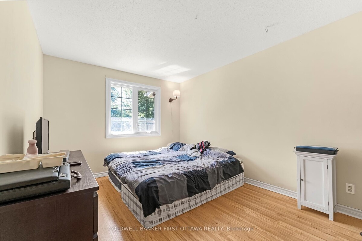 Located in a great location and neighbourhood, this 3 bedroom and 2 bathroom townhome is carpet free with no rear neighbours. The bright sun-filled main level feature a renovated kitchen with ceramic backsplash, oak cabinets, large window and laminate flooring. Open concept dining and living room with hardwood flooring and great view of the private garden and a renovated half bathroom. The upper level feature a renovated main bathroom and 3 spacious bedrooms all with hardwood flooring. The finished lower level feature an open concept family room with a separate area for the laundry room and utility room. Beautiful and spacious extended backyard with no rear neighbours and 2 garden sheds. Schools, parks and major bus routes are just a short walk away. Most rooms have been freshly painted in 2025, refinished hardwood on the main floor in 2018, main bathroom renovated in 2024, windows 2015 and a new roof in 2017. Monthly common element fee of $216 for snow removal and front grass maintenance. Parking space #4 on West side of parking lot. Overnight notice required for viewings and 24 hours irrevocable on offer.