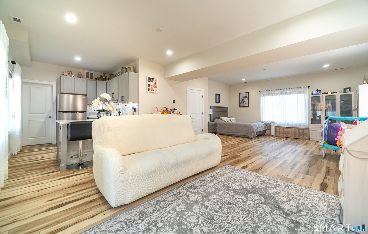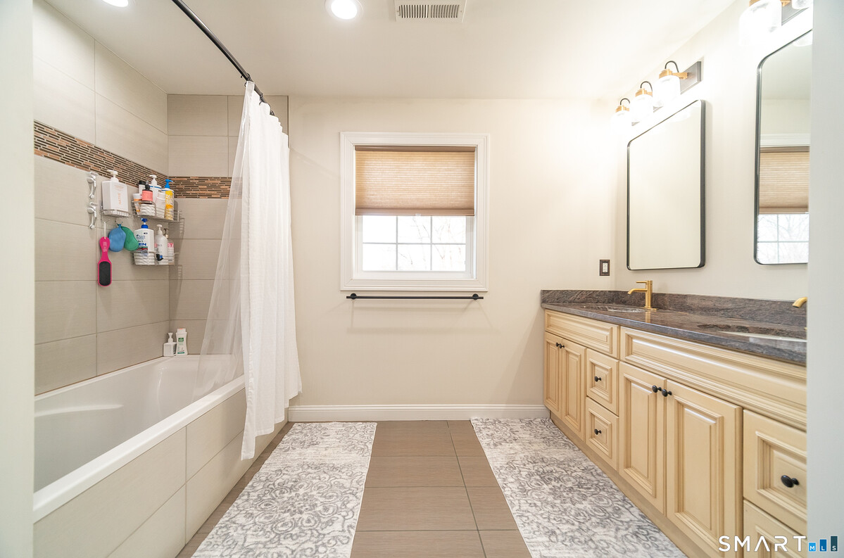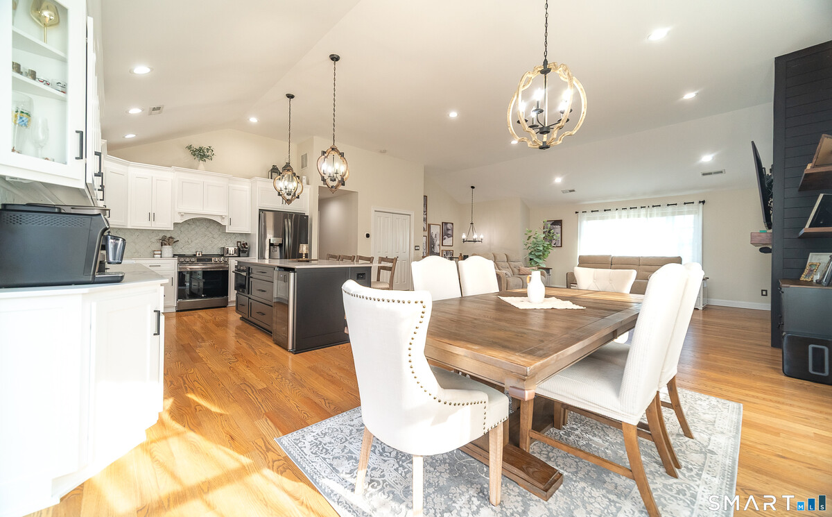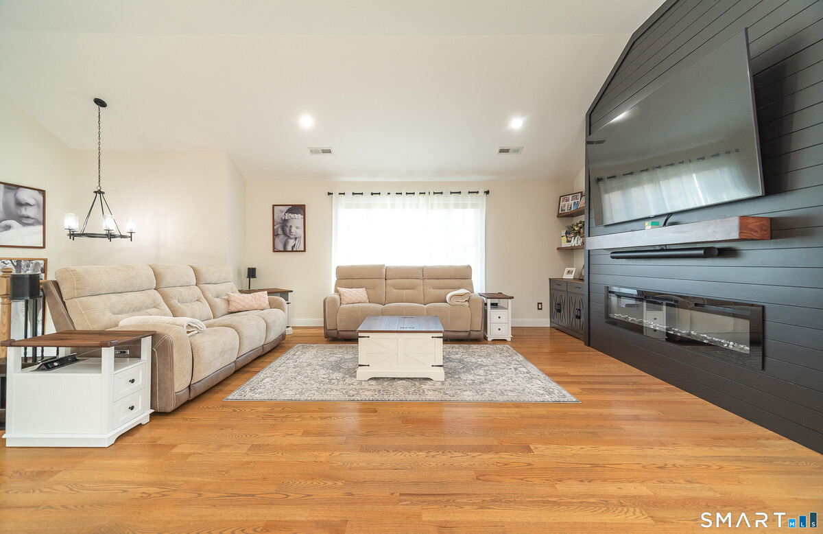 Welcome to a home that truly stands apart from the rest- this stunning, one-of-a-kind Raised Ranch, built in 2016, is loaded with high-end upgrades & thoughtful design throughout. Step through the front door & prepare to be impressed. The main level offers an open-concept living room, dining area & kitchen, all enhanced by soaring cathedral ceilings & an abundance of natural light. The completely remodeled (2025) kitchen is a show stopper, featuring a center island, quartz countertops, shaker style soft-close cabinetry & sleek stainless steel appliances. An oversized farmhouse sink overlooks the beautifully landscaped backyard, making everyday tasks feel anything but ordinary. Sliders off the dining area lead to a composite deck, perfect for morning coffee or evening relaxation. Back inside, the spacious living room features a brand new wall mounted electric fireplace with a custom shiplap entertainment center, completed by recessed lighting & upated fixtures throughout. The main level includes 3 bedrooms, including a primary suite with a tray ceiling, walk-in closet with a dedicated makeup area & a private full bath with granite countertops, double sinks & a tiled tub surround. A 2nd remodeled full bath with granite & tile tub surround is conveniently located off the hallway. Gleaming hardwood floors run throughout the main level. Head downstairs to a beautifully finished lower level offering incredible versatility. You'll find a stylish laundry area with shiplap accents,