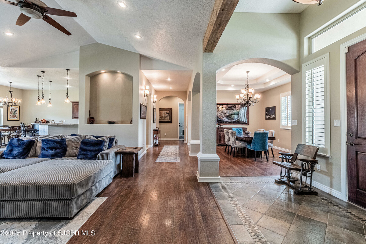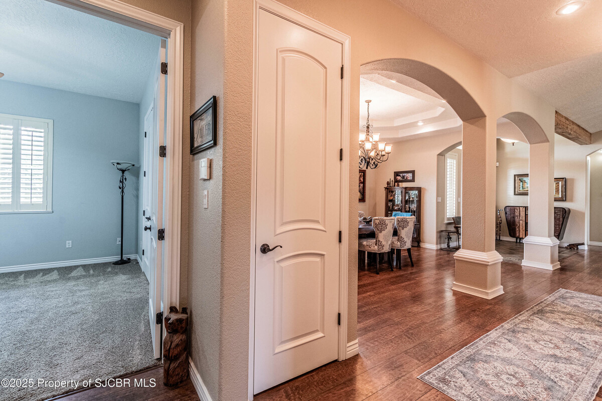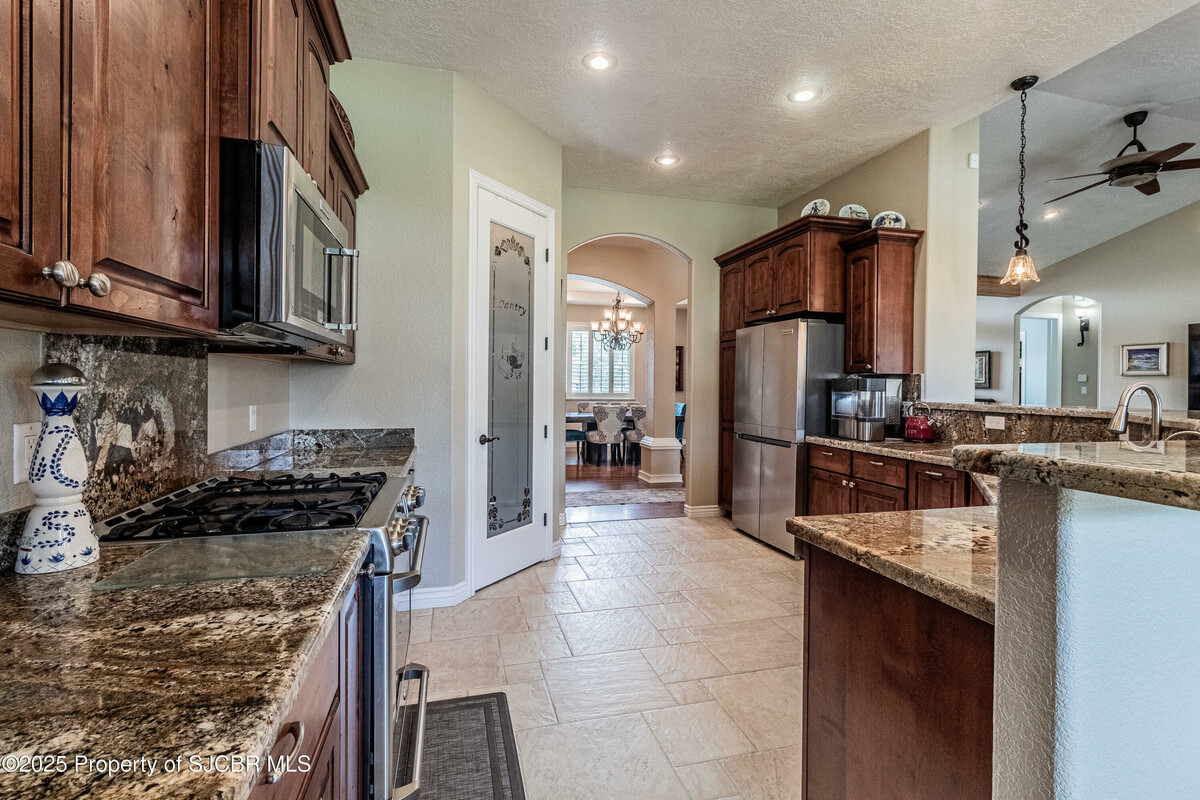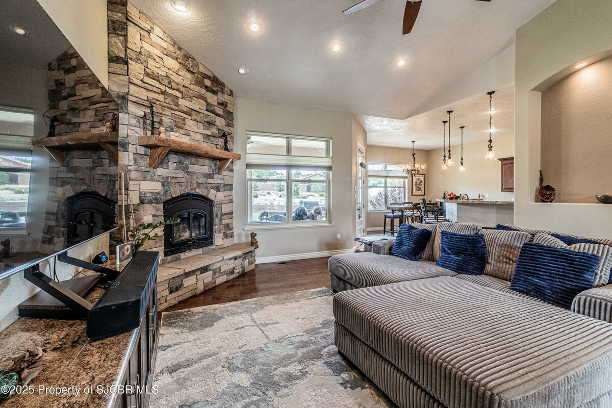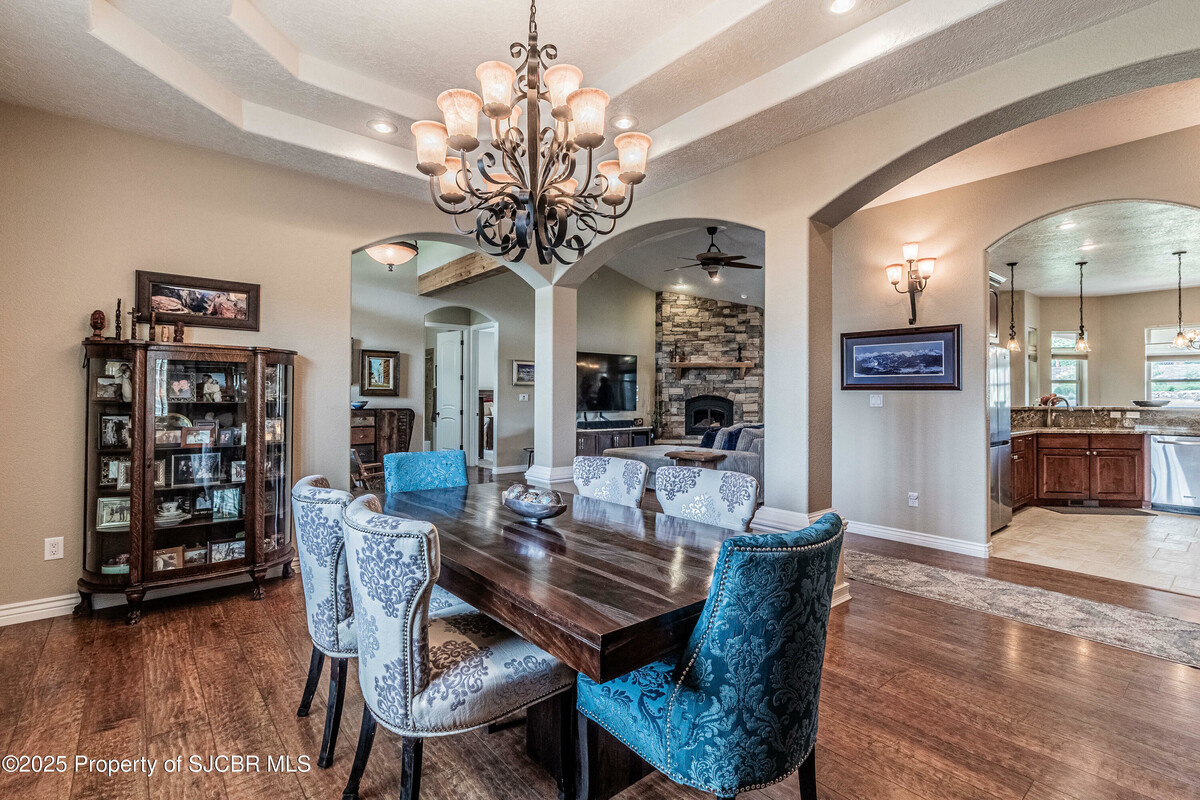 Exceptional Craftsmanship, Space, and Versatility - All on an Irrigated Acre!Welcome to 704 Anasazi in Aztec in the lovely Kokopelli subdivision - a stunning 4 bed, 3 bath custom home offering over 2,800 sq ft of thoughtfully designed living space on a beautifully irrigated landscaped acre. This single-level gem showcases superior craftsmanship throughout, with 10-foot ceilings, large windows and a cozy wood burning fireplace that anchors the spacious living area. The primary suite features a large roll-in shower, perfect for accessibility and comfort. Both the attached garage and 30x45 shop are heated and cooled and a 1/2 bath and two overhead garage doors. Perfect for the car enthusiasts or avid hobbyist.Outside, enjoy covered RV parking with full hookups, a block privacy wall, fully landscaped complete with sprinkler system and double gate access to the shop and the backyard. With premium features, privacy, and unmatched functionality, this home is perfect for those who want space without sacrificing style.