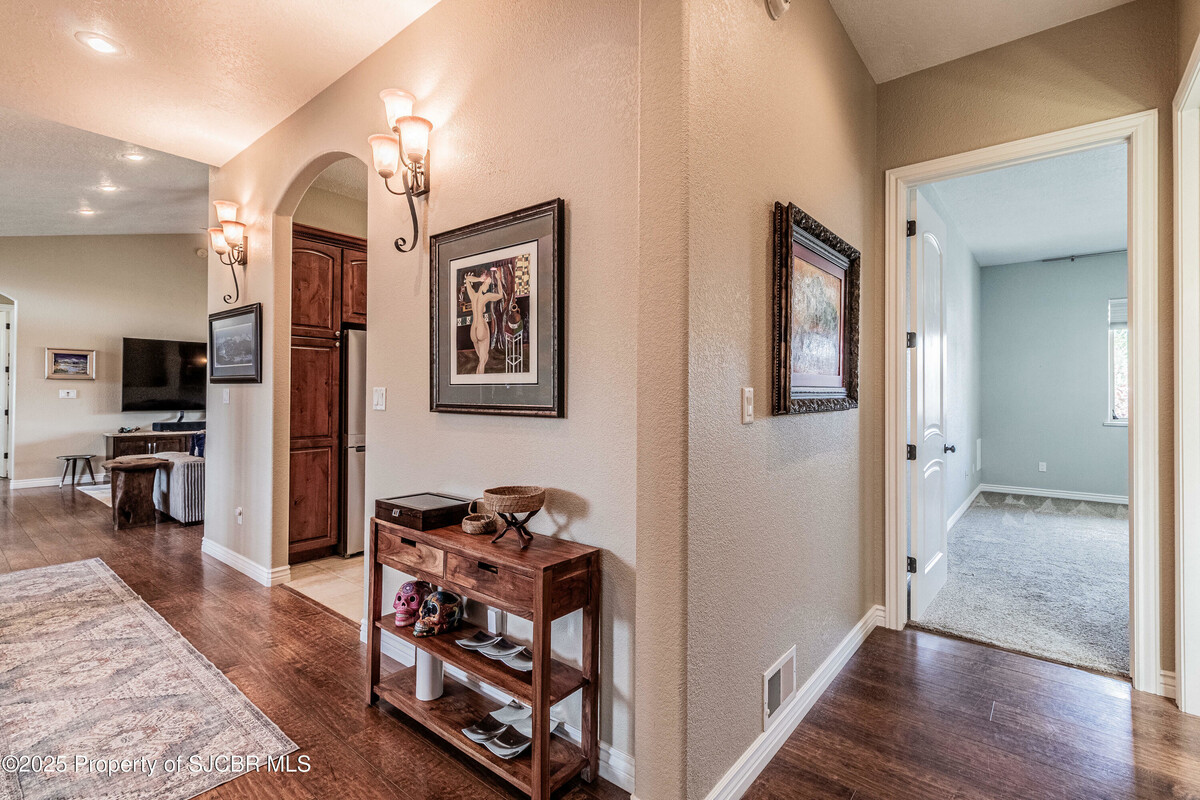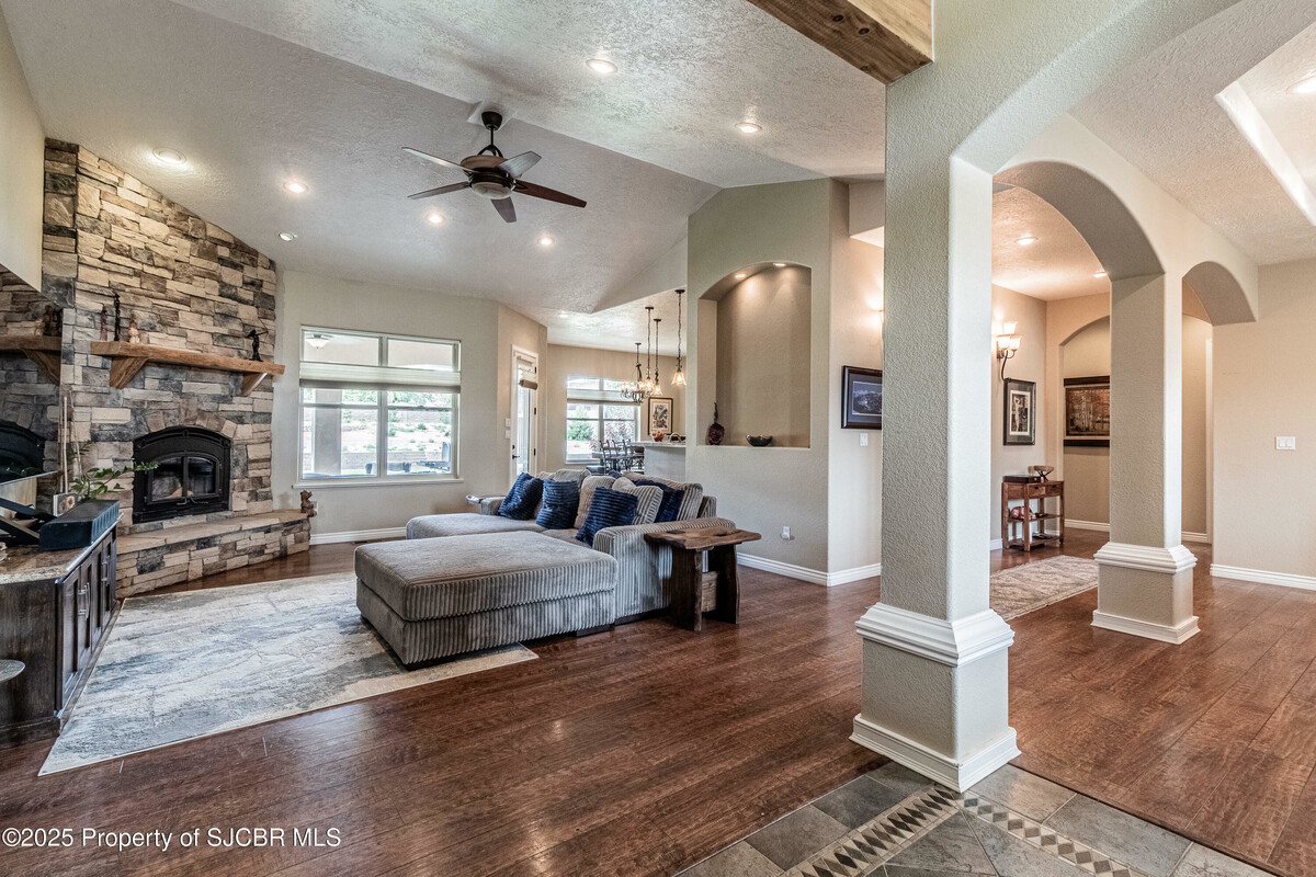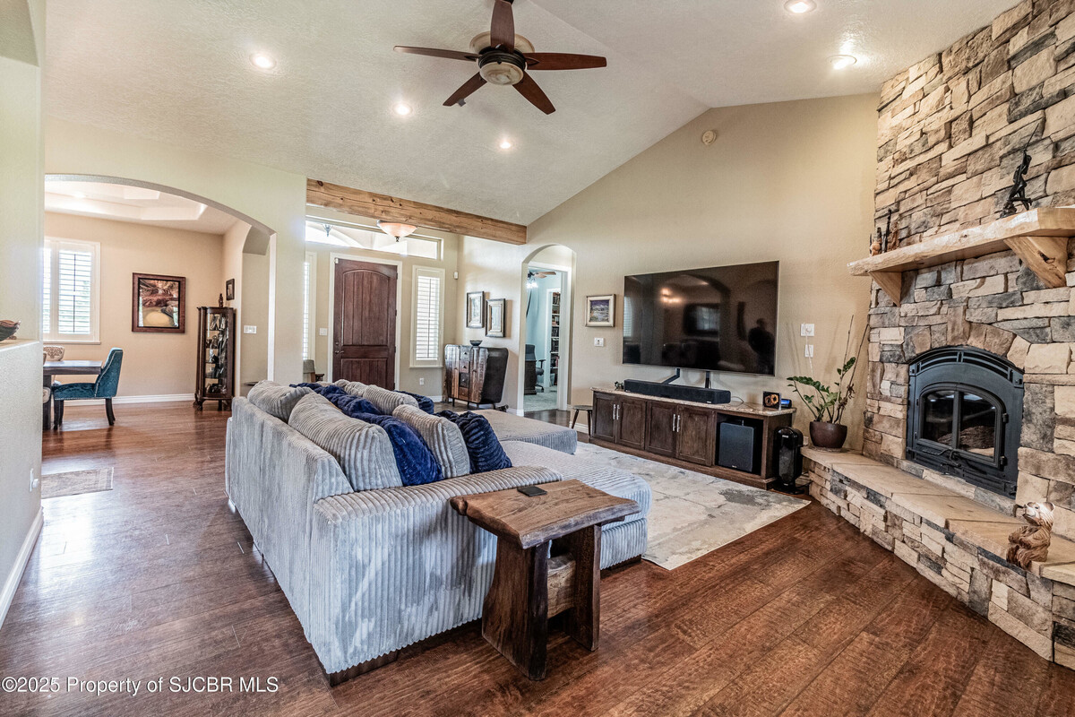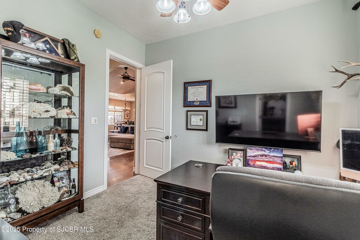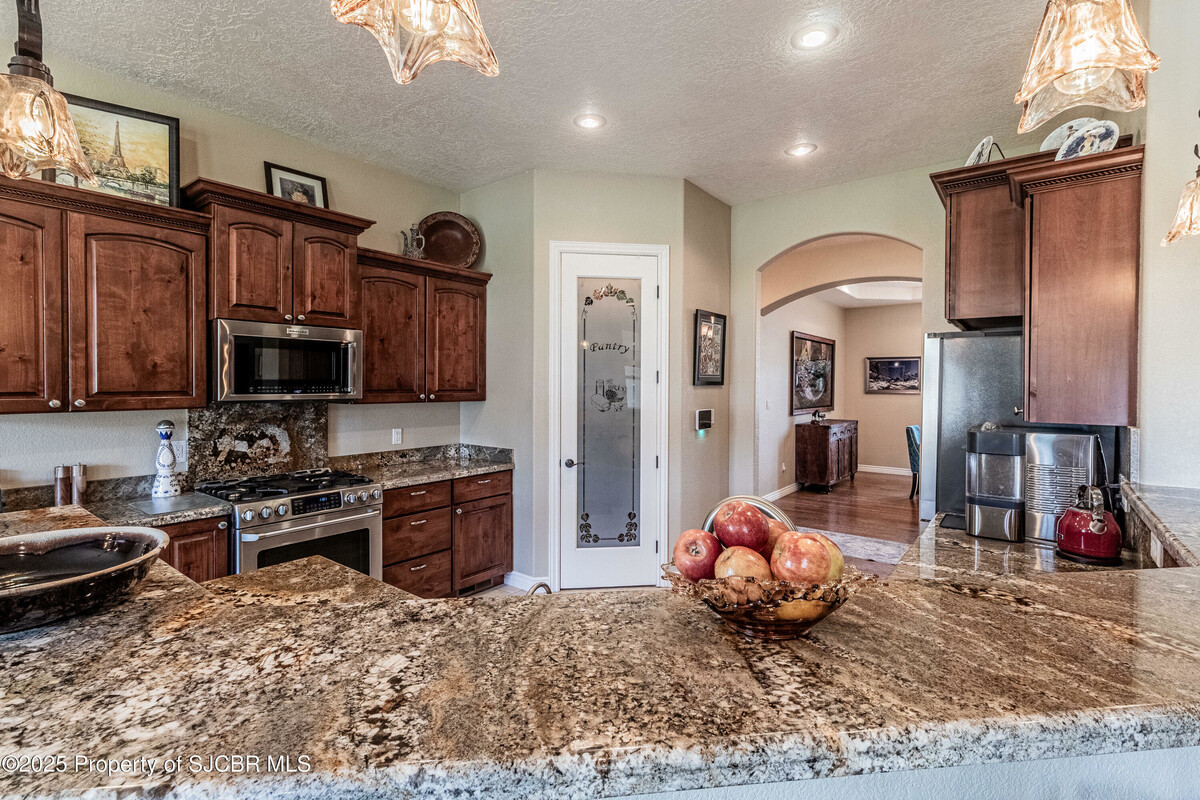 Exceptional Craftsmanship, Space, and Versatility - All on an Irrigated Acre!Welcome to 704 Anasazi in Aztec in the lovely Kokopelli subdivision - a stunning 4 bed, 3 bath custom home offering over 2,800 sq ft of thoughtfully designed living space on a beautifully irrigated landscaped acre. This single-level gem showcases superior craftsmanship throughout, with 10-foot ceilings, large windows and a cozy wood burning fireplace that anchors the spacious living area. The primary suite features a large roll-in shower, perfect for accessibility and comfort. Both the attached garage and 30x45 shop are heated and cooled and a 1/2 bath and two overhead garage doors. Perfect for the car enthusiasts or avid hobbyist.Outside, enjoy covered RV parking with full hookups, a block privacy wall, fully landscaped complete with sprinkler system and double gate access to the shop and the backyard. With premium features, privacy, and unmatched functionality, this home is perfect for those who want space without sacrificing style.